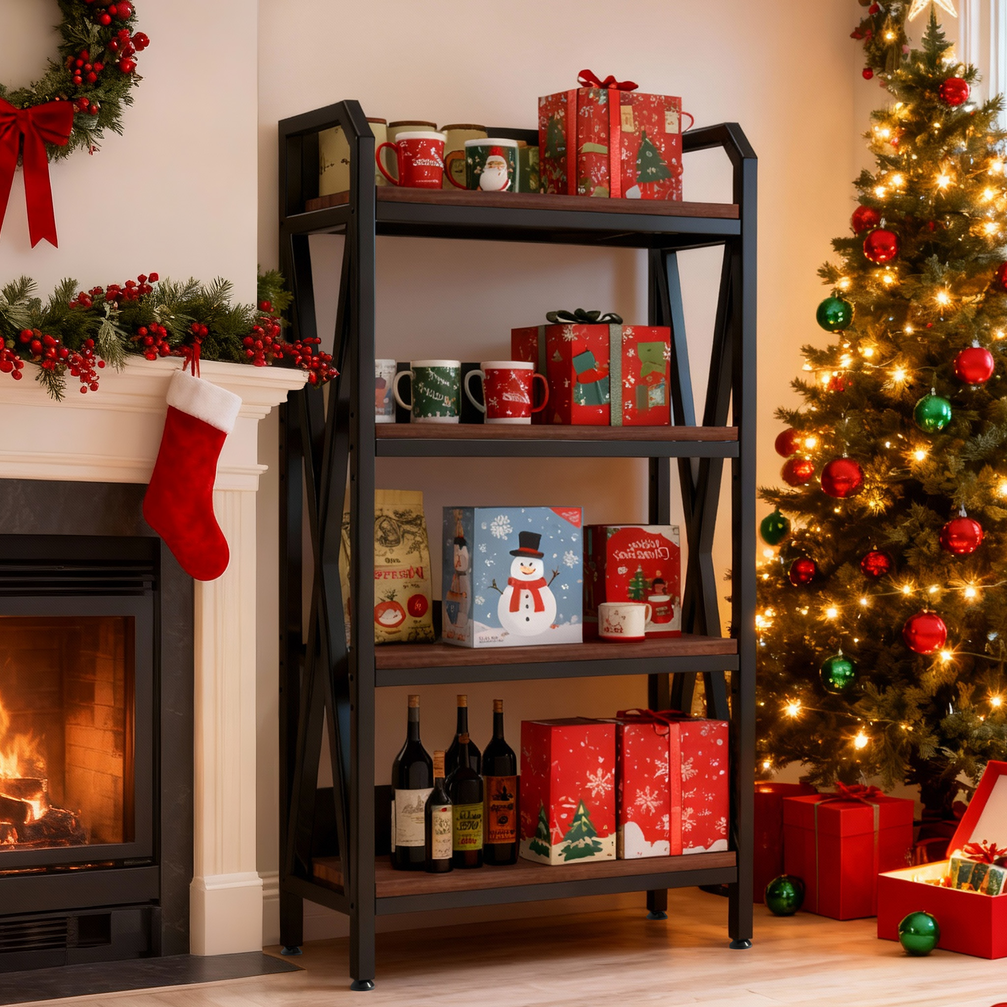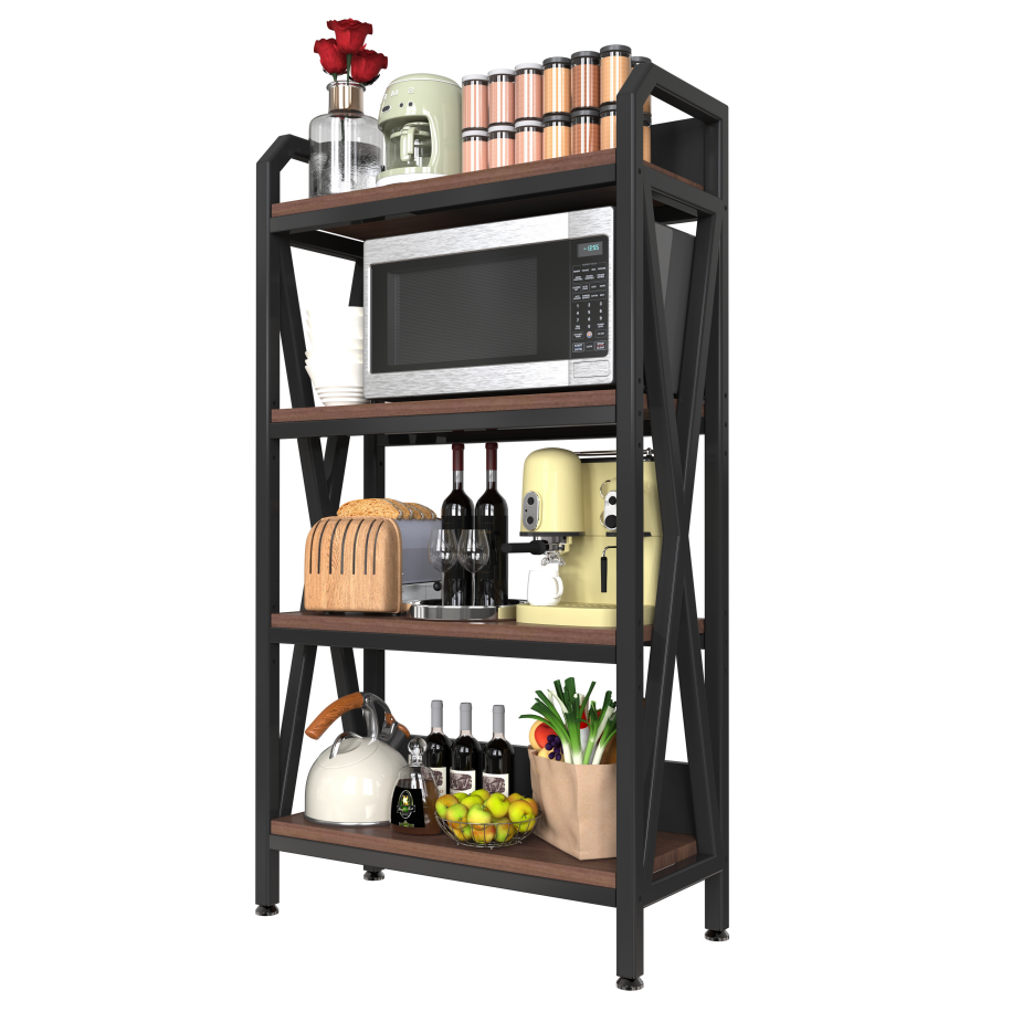 Rack 4-Level Storage Shelves Metal And Wooden Kitchen Shelves
