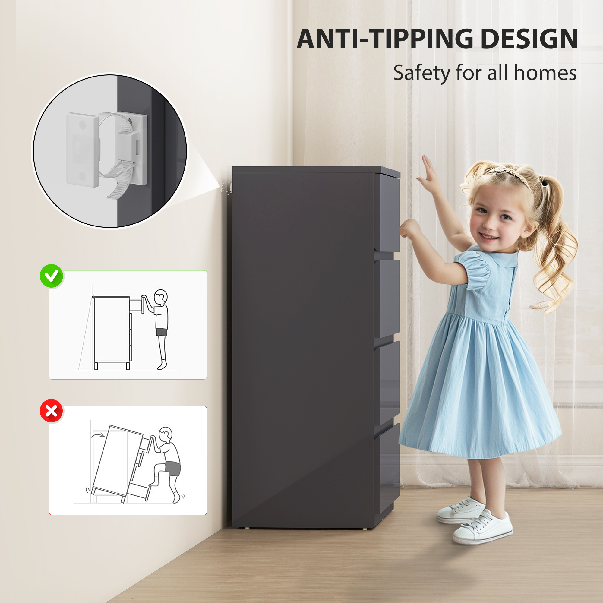 - Anti-tipping straps included: safe in homes with little ones and pets