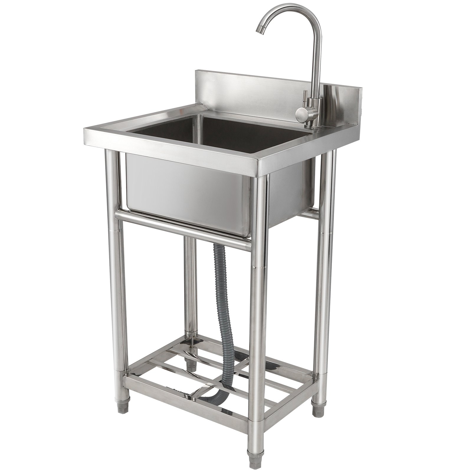 Stainless Steel Utility Sink: Featuring a high-quality stainless steel construction, this sink is designed for durability with excellent corrosion resistance, oxidation resistance, and wear resistance. Its all-metal structure ensures a longer lifespan in most environments. The adjustable legs allow for stable installation even on uneven surfaces.